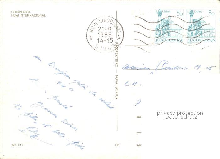 old postcard Crikvenica Kroatien Hotel Internacional postalisch gelaufen Erhaltung siehe scans