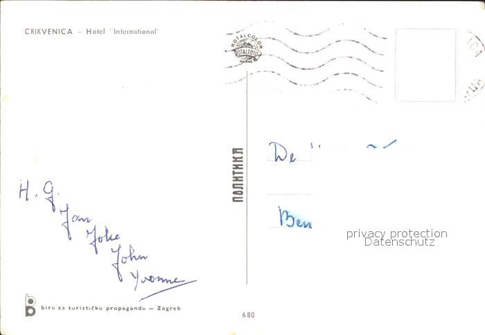 old postcard Crikvenica Kroatien Hotel International postalisch gelaufen Erhaltung siehe scans