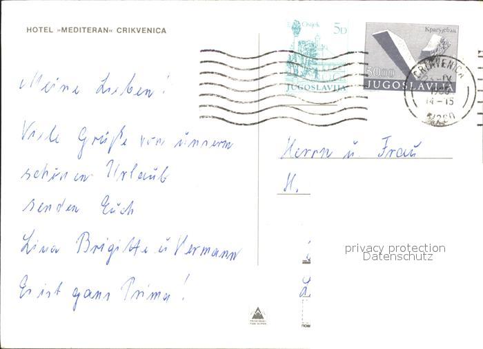 old postcard Crikvenica Kroatien Hotel Mediteran postalisch gelaufen Erhaltung siehe scans