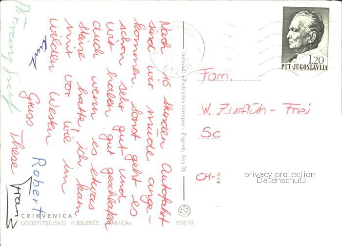 old postcard Crikvenica Kroatien Hotel Riviera postalisch gelaufen Erhaltung siehe scans