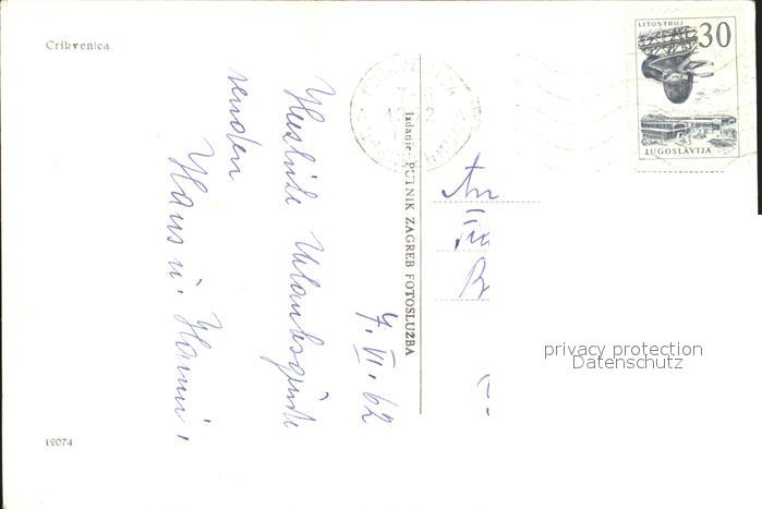 old postcard Crikvenica Kroatien Segelboot Strand postalisch gelaufen Erhaltung siehe scans