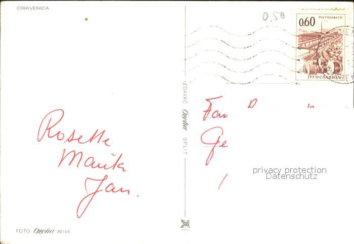 old postcard Crikvenica Kroatien Uferstrasse Hafen postalisch gelaufen Erhaltung siehe scans