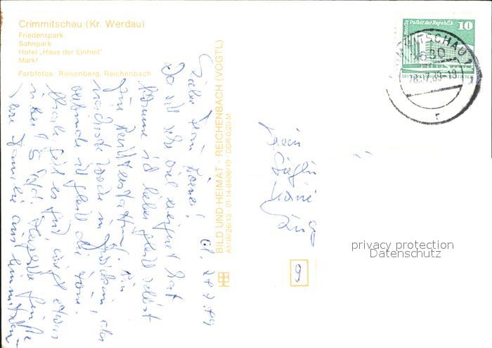 72447738 alte Postkarte Crimmitschau Friedenspark Sahnpark Markt postalisch gelaufen Erhaltung siehe scans KatCode: 11110014193020
