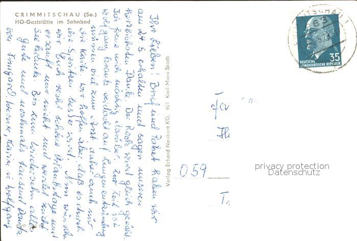 72064263 alte Postkarte Crimmitschau HO Gaststaette im Sahnbad Schwimmbad postalisch gelaufen Erhaltung siehe scans KatCode: 11110014193020