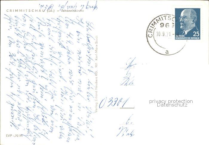 71970592 alte Postkarte Crimmitschau Johanniskirche postalisch gelaufen KatCode: 11110014193020