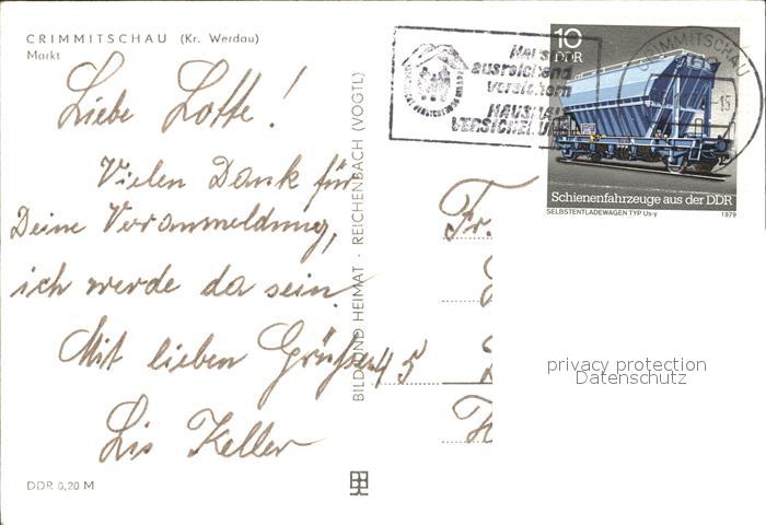 72315025 alte Postkarte Crimmitschau Markt Brunnen postalisch gelaufen Erhaltung siehe scans KatCode: 11110014193020