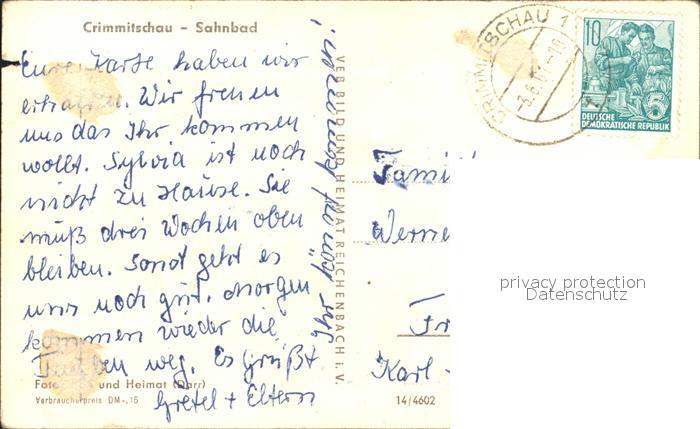 72392524 alte Postkarte Crimmitschau Sahnbad postalisch gelaufen Erhaltung siehe scans KatCode: 11110014193020