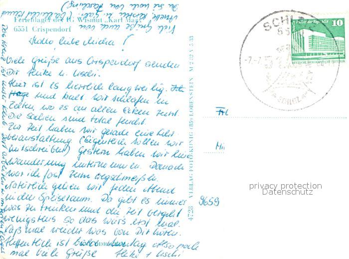 72977994 alte Postkarte Crispendorf Ferienlager der IG Wismut Karl Marx postalisch gelaufen Erhaltung siehe scans [FriedD77] KatCode: 11110016075013