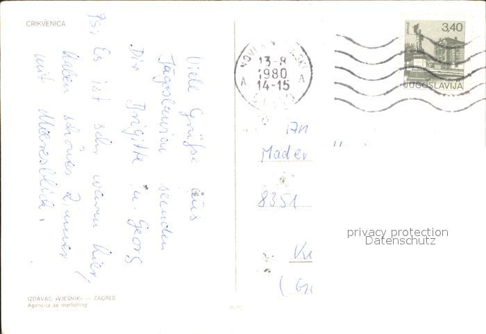 old postcard Crkvenice Hafenpartie Hafenstrasse postalisch gelaufen Erhaltung siehe scans