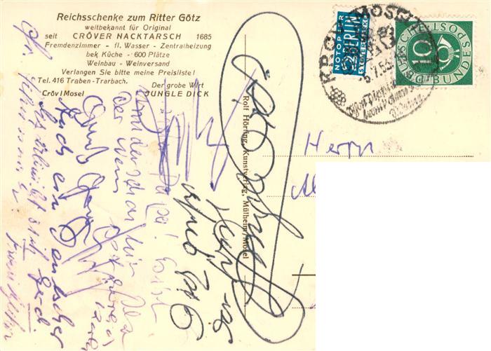 73873707 Croev Kroev Croev Mosel Reichsschaenke Zum Ritter Goetz Original Croever Nacktarsch postalisch gelaufen Erhaltung siehe scans [FriedD77] alte Postkarte Frie Katcode 11110007231072