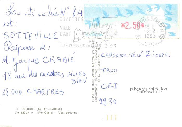 34143554 carte postale CROISIC LE Saint-Nazaire 44 Loire-Atlantique Pen-Castel vue aérienne postalisch gelaufen Fliegeraufnahme Erhaltung siehe scans [FriedD77] KatCode: 11170044344049