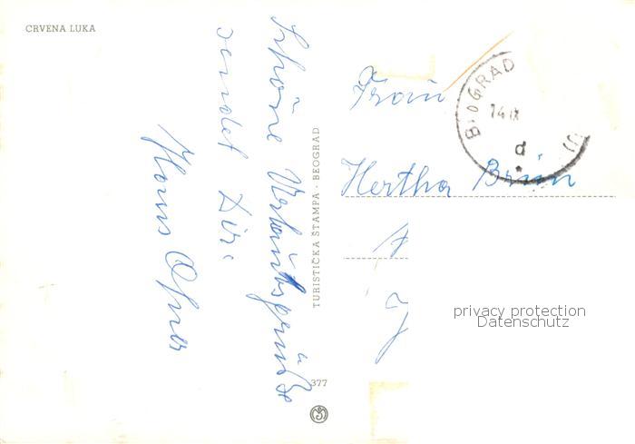 73849185 Crvena Luka Croatia Badestrand Hotels postalisch gelaufen Erhaltung siehe scans [WerneD78] old postcard Wern Katcode 11260