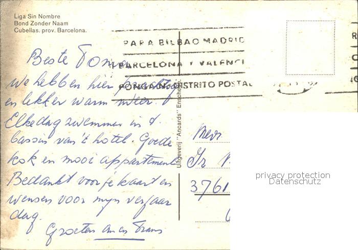 old postcard Cubellas Bond Zonder Naam Hotelbar Swimmingpool Gastraum Terrasse postalisch gelaufen Erhaltung siehe scans