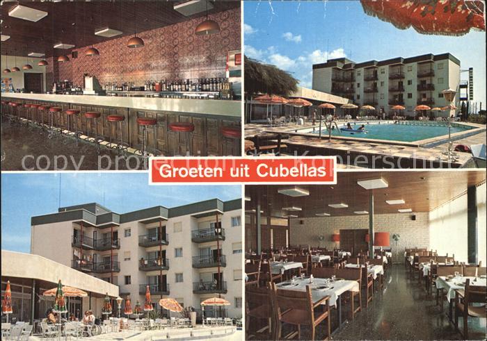 old postcard Cubellas Liga Sin Nombre Hotel Bar Restaurant Swimming Pool postalisch gelaufen Erhaltung siehe scans