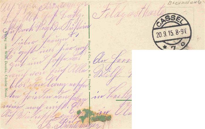 73975218 old postcard Cuestrin-Neustadt Kuestrin Ostbrandenburg Kostrzyn PL Landsbergerstrasse Feldpost postalisch gelaufen Erhaltung siehe scans [FriedD77] KatCode: 11410