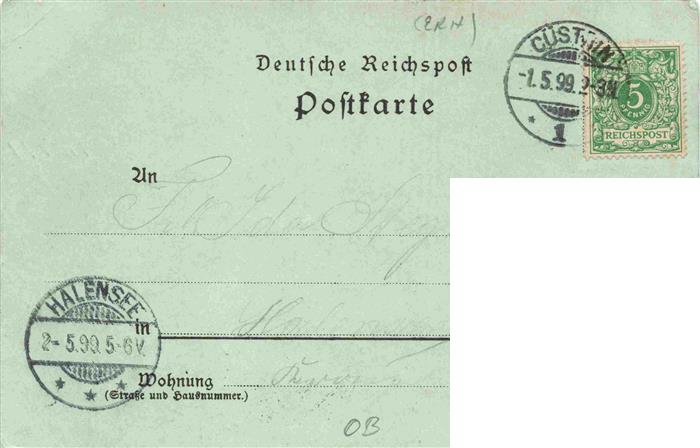 73975224 old postcard Cuestrin-Neustadt Kuestrin Ostbrandenburg Kostrzyn PL Oderbruecke Vorstadt im Mondschein Kirche Marktplatz Bahnhof Litho Deutsche Reichspost postalisch gelaufen Erhaltung siehe scans [FriedD77] KatCode: 11410