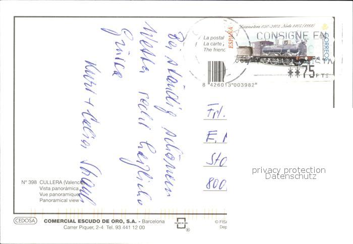 old postcard Cullera Valenciana Hotels Strand postalisch gelaufen Erhaltung siehe scans