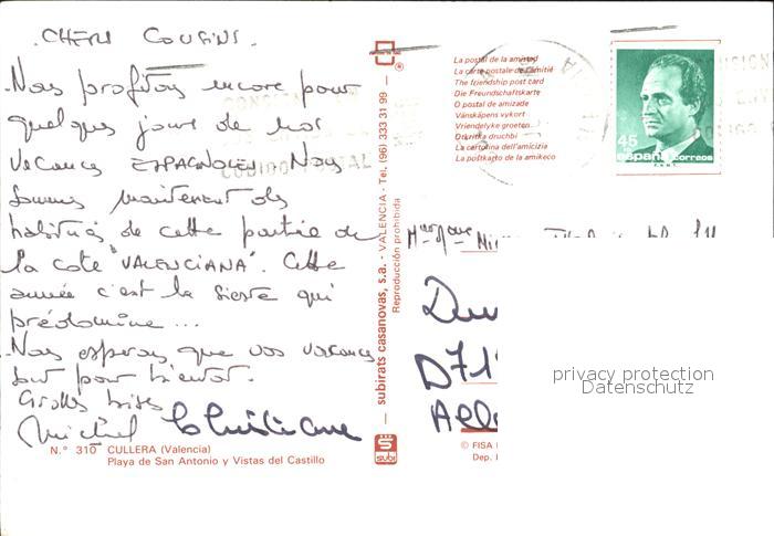 old postcard Cullera Valenciana Playa de San Antonio postalisch gelaufen Erhaltung siehe scans