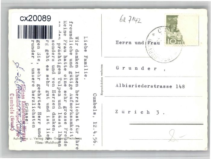 10738070 alte Postkarte Cumbel postalisch gelaufen KatCode: 11470100355430