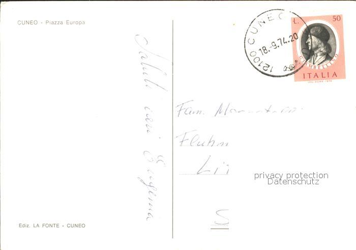 old postcard Cuneo Piazza Europa postalisch gelaufen Erhaltung siehe scans