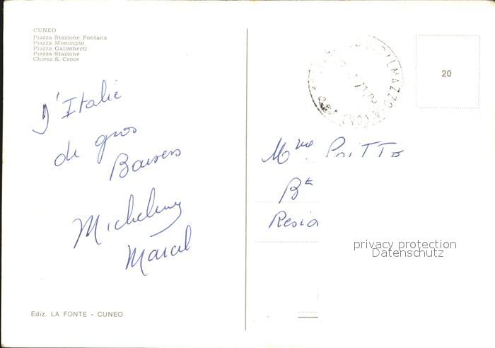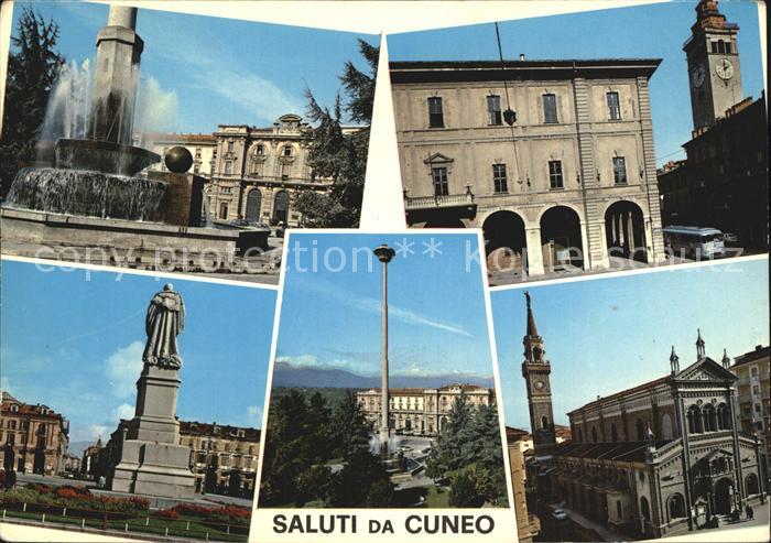 old postcard Cuneo Piazza Stationi Fontana Piazza- Galimberti Stazione Chiesa San Croce postalisch gelaufen Erhaltung siehe scans