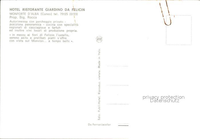 Cuneo Restaurant Giardino da Felicin Monforte D`Alba postalisch nicht gelaufen Erhaltung siehe scans