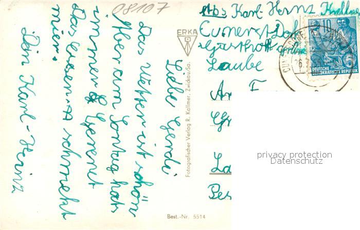 73748375 alte Postkarte Cunersdorf Kirchberg Gasthof Gruene Laube postalisch gelaufen Erhaltung siehe scans [WerneD78] KatCode: 11110014193160