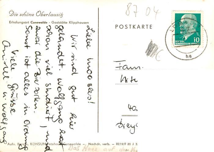 73907576 alte Postkarte Cunewalde Gaststaette Klipphausen postalisch gelaufen Erhaltung siehe scans [FriedD77] KatCode: 11110014272050