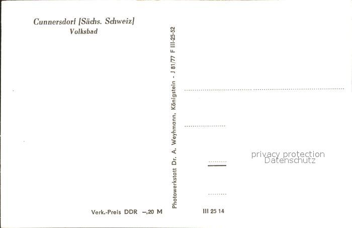71954374 Cunnersdorf Glashuette Sachsen Volksbad postalisch nicht gelaufen Erhaltung siehe scans KatCode: 11110014290150
