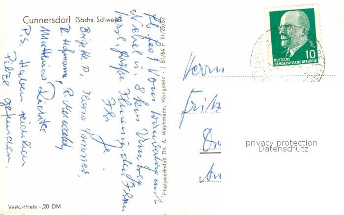 72643002 alte Postkarte Cunnersdorf Gohrisch Ortsansicht mit Kirche postalisch gelaufen Erhaltung siehe scans [FriedD77] KatCode: 11110014287120