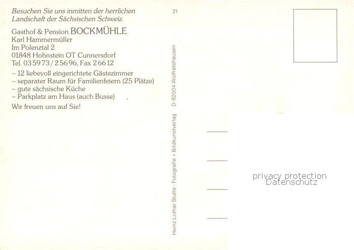 73658348 Cunnersdorf Hohnstein Gasthof Pension Bockmuehle Gaestezimmer Festtafel Partie am Wasser Maigloeckchen postalisch nicht gelaufen Erhaltung siehe scans [FriedD77] KatCode: 11110014287160