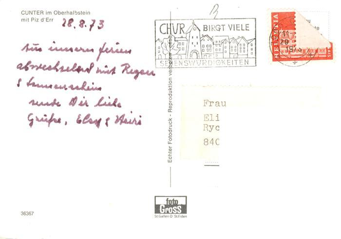 13870688 alte Postkarte Cunter GR Panorama mit Piz d Err Oberhalbstein postalisch gelaufen Erhaltung siehe scans [FriedD77] KatCode: 11470100305944