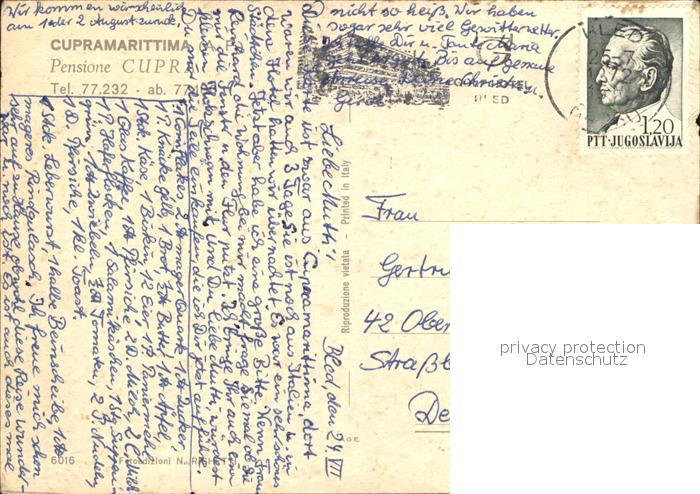 old postcard Cupra Marittima Pensione Cupra Strand Strassenpartie postalisch gelaufen Erhaltung siehe scans [FriedD77 kt118box]