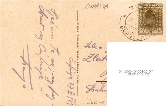 73790353 Cuprija Tschuprija Serbija Strassen-Ansicht postalisch gelaufen Erhaltung siehe scans [LiesaD40] old postcard Lies Katcode 11480