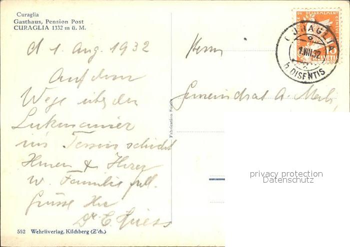 11634224 alte Postkarte Curaglia Gasthaus Pension Post postalisch gelaufen Erhaltung siehe scans KatCode: 11470100355464