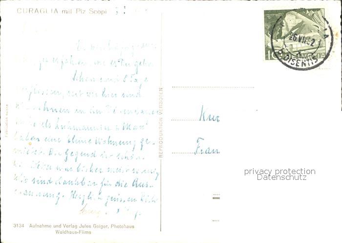11631172 alte Postkarte Curaglia mit Piz Scopi postalisch gelaufen Erhaltung siehe scans KatCode: 11470100355464