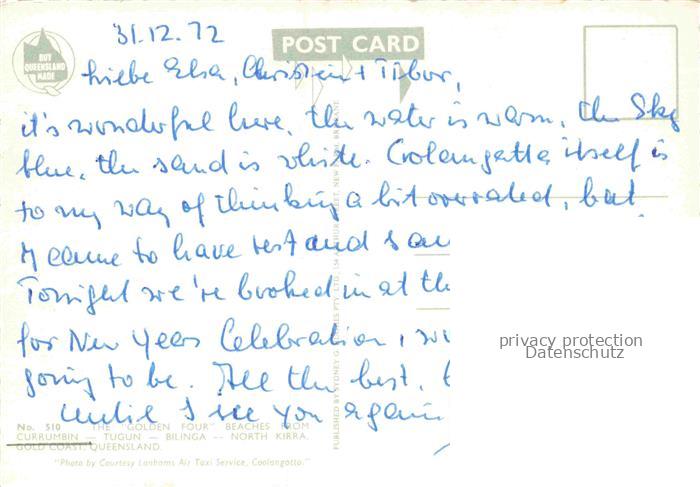 74157639 Currumbin Gold Coast Queensland Australia Currumbin Tugun Bilinga North-Kirra Gold-Coast Strand Kueste Brandung Luftbild postalisch nicht gelaufen Fliegeraufnahme Erhaltung siehe scans [Karloger] KatCode: 19010