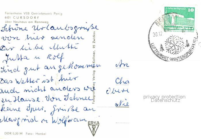 72704336 alte Postkarte Cursdorf Ferienheim VEB Penig postalisch gelaufen Erhaltung siehe scans [FriedD77] KatCode: 11110016073013
