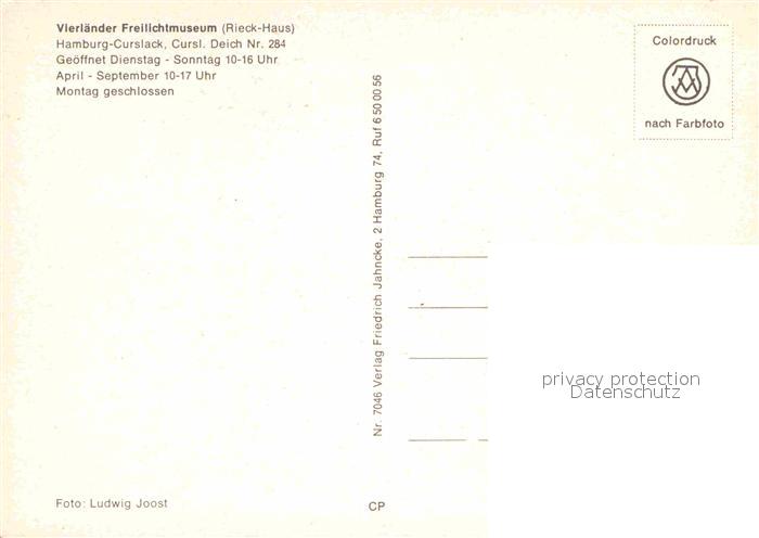 72725776 Curslack Vierlaender Freilichtmuseum Rieck Haus postalisch nicht gelaufen Erhaltung siehe scans [WerneD78] KatCode: 11110002000000
