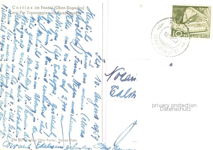 13853873 alte Postkarte Curtins Fextal Val Fex Sils Maria GR mit Piz Tremoggia und Fexgletscher postalisch gelaufen Erhaltung siehe scans [WerneD78] KatCode: 11470100335230