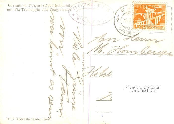 13853877 alte Postkarte Curtins Fextal Val Fex Sils Maria GR mit Piz Tremoggia und Fexgletscher postalisch gelaufen Erhaltung siehe scans [WerneD78] KatCode: 11470100335230