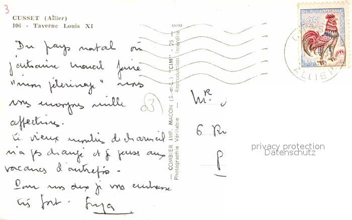 12672512 carte postale Cusset Allier Taverne Louis XI postalisch gelaufen Erhaltung siehe scans [NatalD47] KatCode: 11170003303095