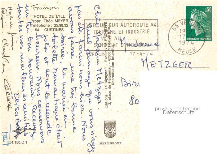 12683326 carte postale Custines Hotel De L’Ill postalisch gelaufen Erhaltung siehe scans [AndreD76] KatCode: 11170054354150
