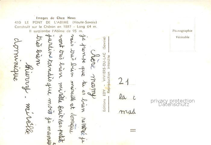 13640352 Cusy Pont de l’Abime construit sur le Chéron postalisch nicht gelaufen Erhaltung siehe scans [FriedD77] Frie Katcode 11170074174097