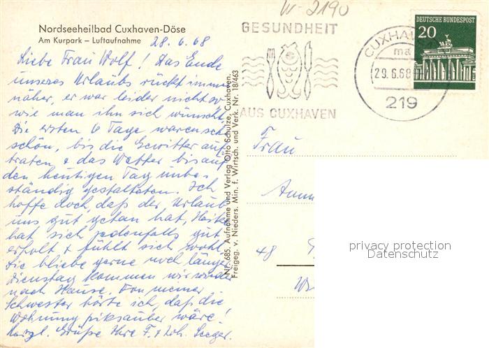 72935325 alte Postkarte Cuxhaven Doese Nordseebad Fliegeraufnahme Kurpark postalisch gelaufen Erhaltung siehe scans [LiesaD40] KatCode: 11110003352011