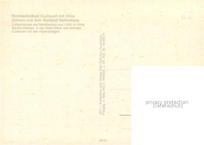 73204020 Cuxhaven Doese Nordseebad Fliegeraufnahme Sahlenburg postalisch nicht gelaufen Erhaltung siehe scans [NatalD47] KatCode: 11110003352011