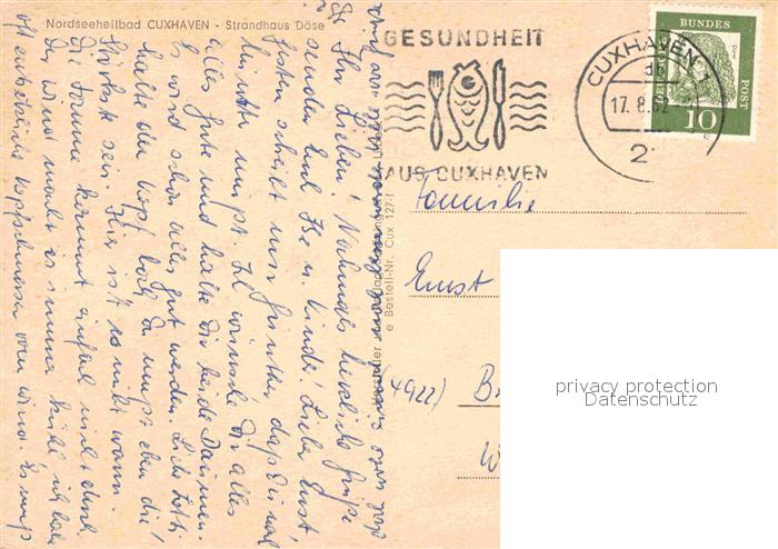 72719170 alte Postkarte Cuxhaven Doese Nordseebad Strandhaus postalisch gelaufen Erhaltung siehe scans [LiesaD40] KatCode: 11110003352011