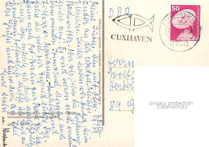 73011200 alte Postkarte Cuxhaven Doese Nordseebad Veranstaltungshalle im Kurpark postalisch gelaufen Erhaltung siehe scans [WerneD78] KatCode: 11110003352011