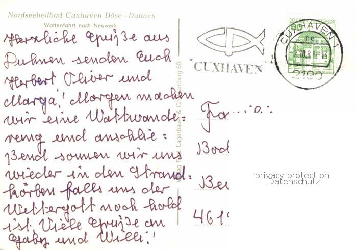 72786484 alte Postkarte Cuxhaven Doese Nordseebad Wattfahrt nach Neuwerk postalisch gelaufen Erhaltung siehe scans [AndreD76] KatCode: 11110003352011