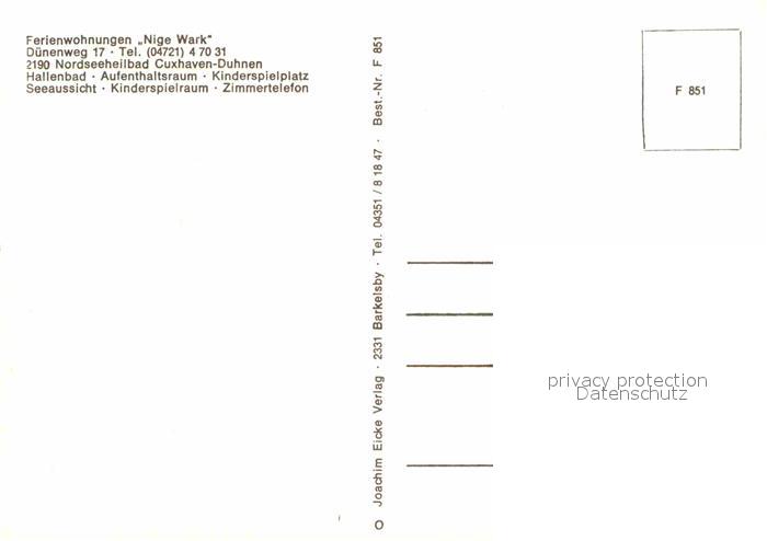 72727268 Cuxhaven Duhnen Nordseebad Ferienwohnungen Nige Wark postalisch nicht gelaufen Erhaltung siehe scans [LiesaD40] KatCode: 11110003352011